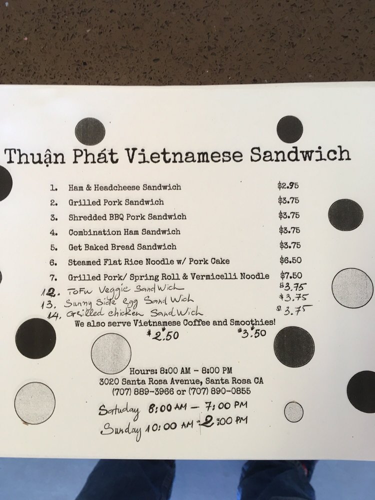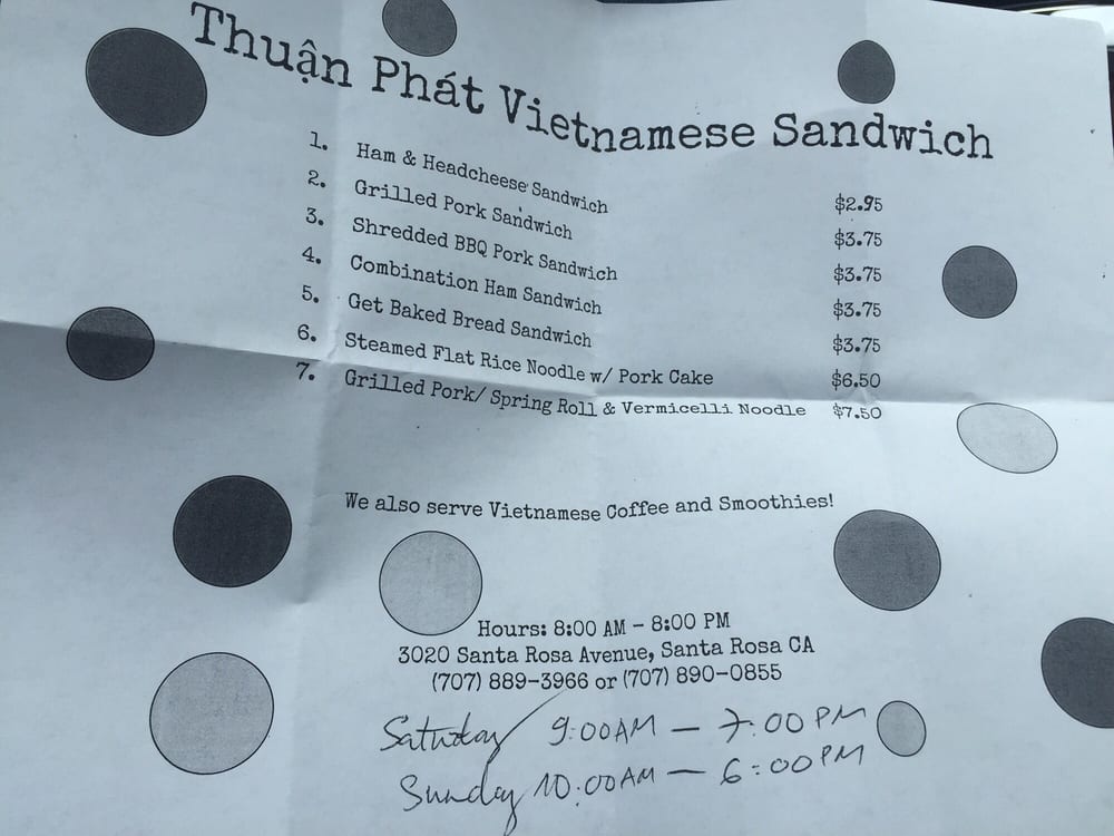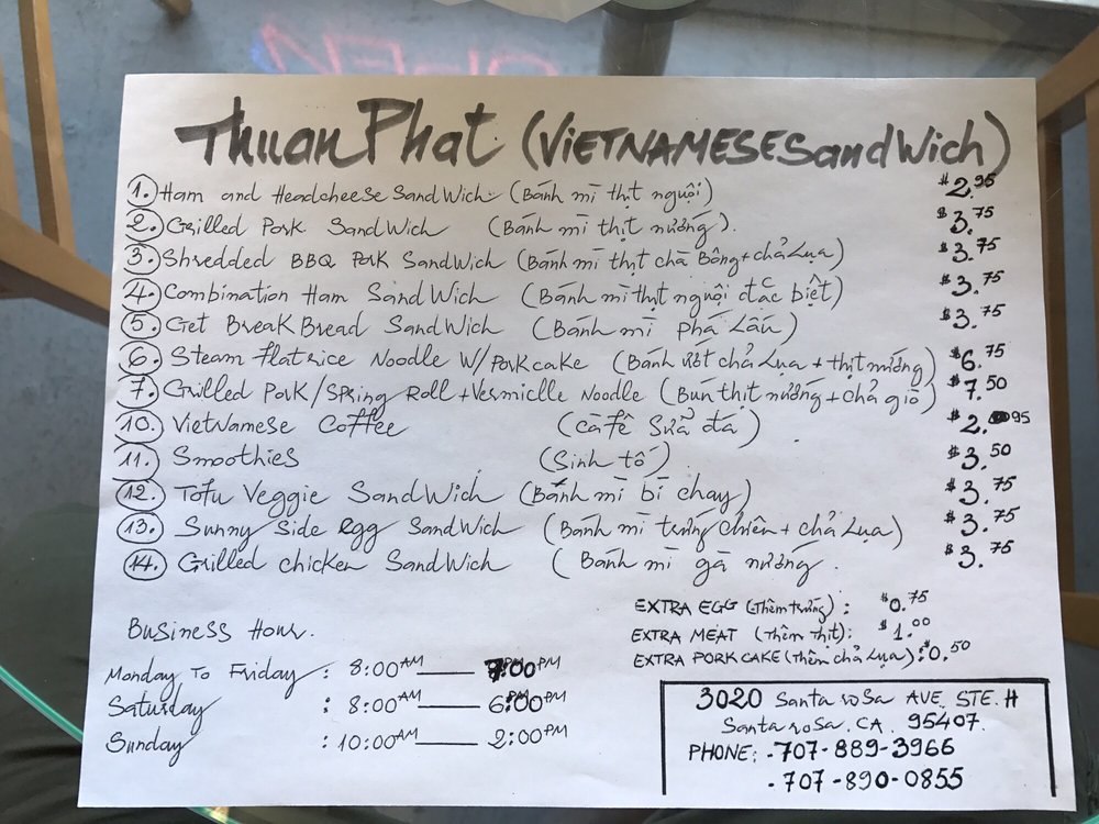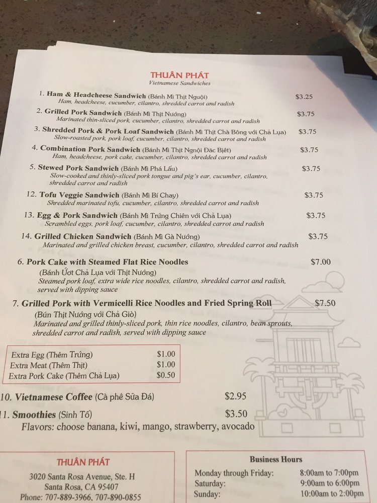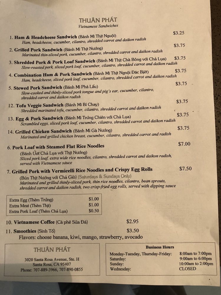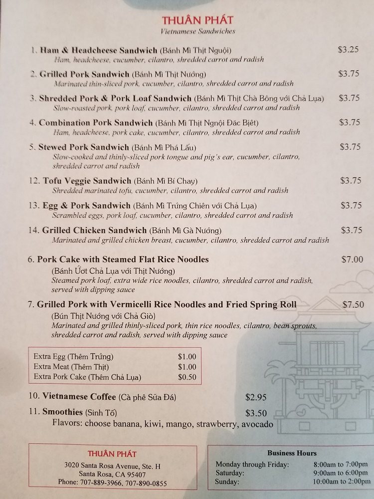 Thuan Phat Vietnamese Sandwiches Menu (Update 2025)
